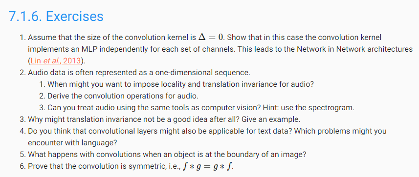 1) Audio 에서 Locality를 적용하는 이유는 짧은 시간 동안의 패텅을 포착하기 위해서이다. Translation invariance 는 음성의 위치가 바뀌어도 같은 패턴을 인식할 수 있게 한다. 예를 들어, 동일한 음이 오디오 시퀀스의 어느 위치에 있든 감지할 수 있도록 한다.