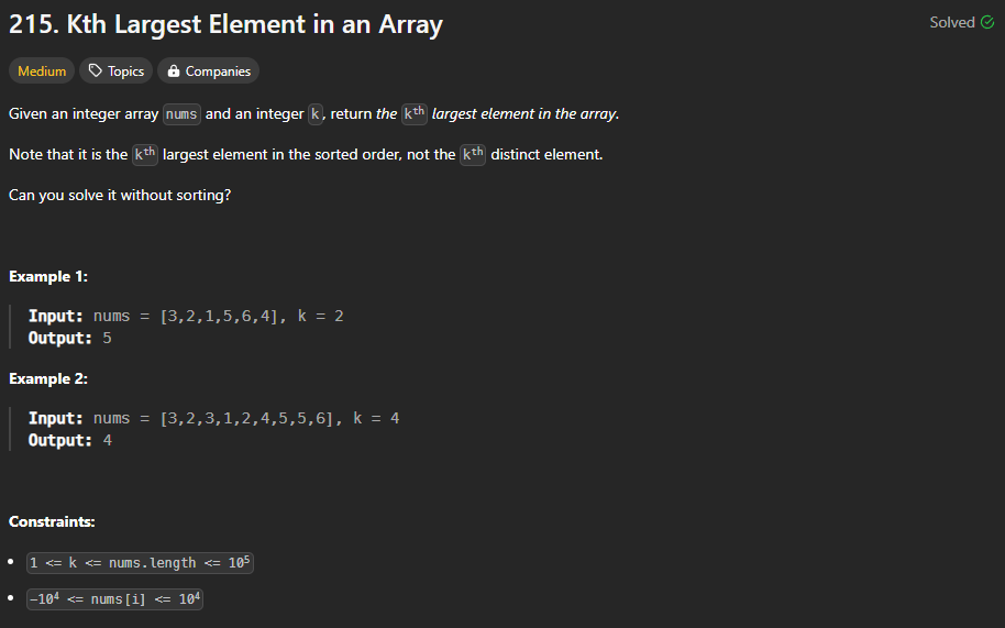 오늘은 LeetCode의 215. Kth Largest Element in an Array 문제를 풀어보겠습니다.